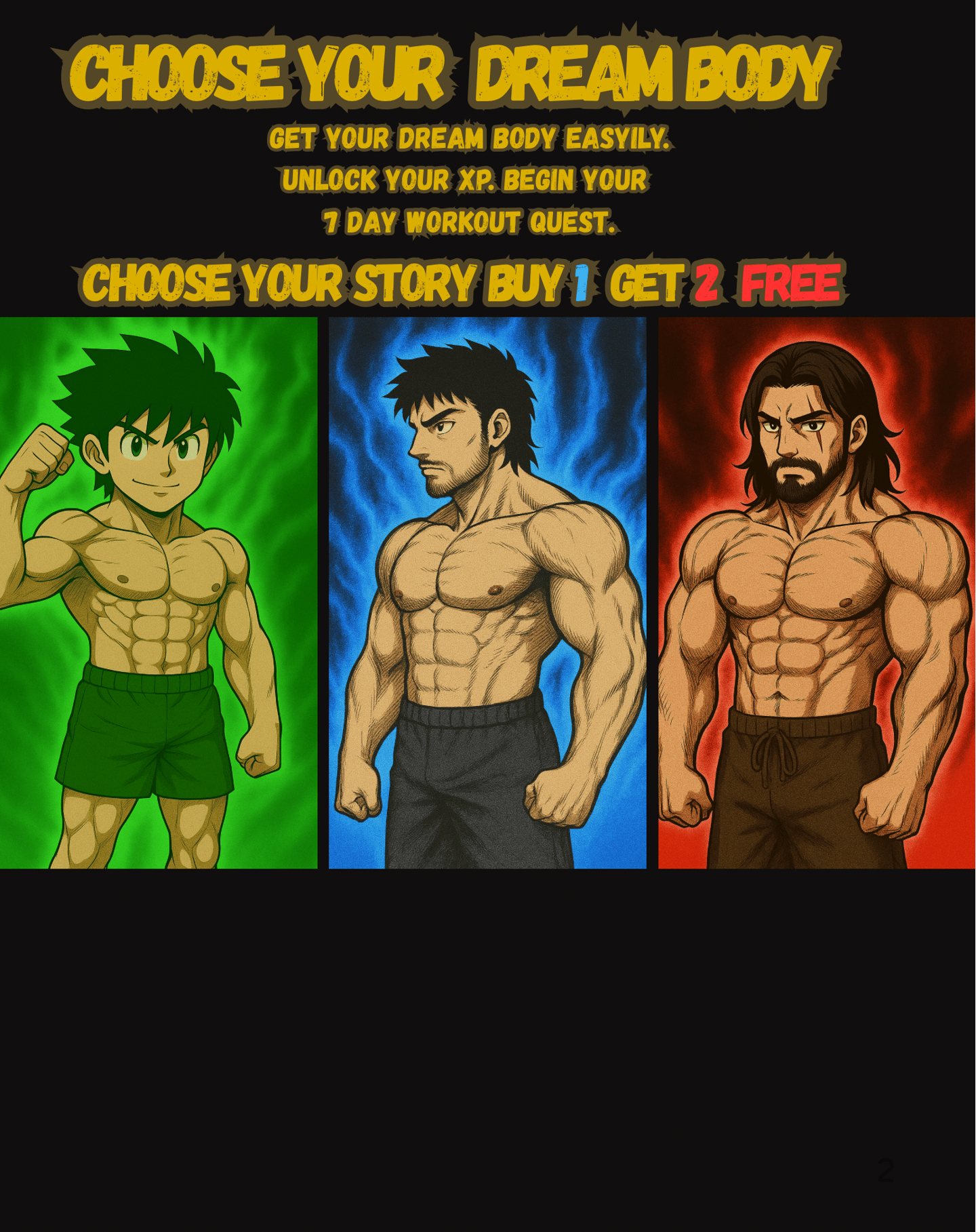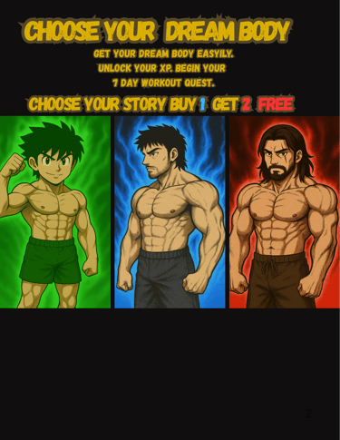 Choose Mike, Dan, or Paul and dive into a 7-day plan that turns workouts and meals into an epic XP quest tailored to your weight.